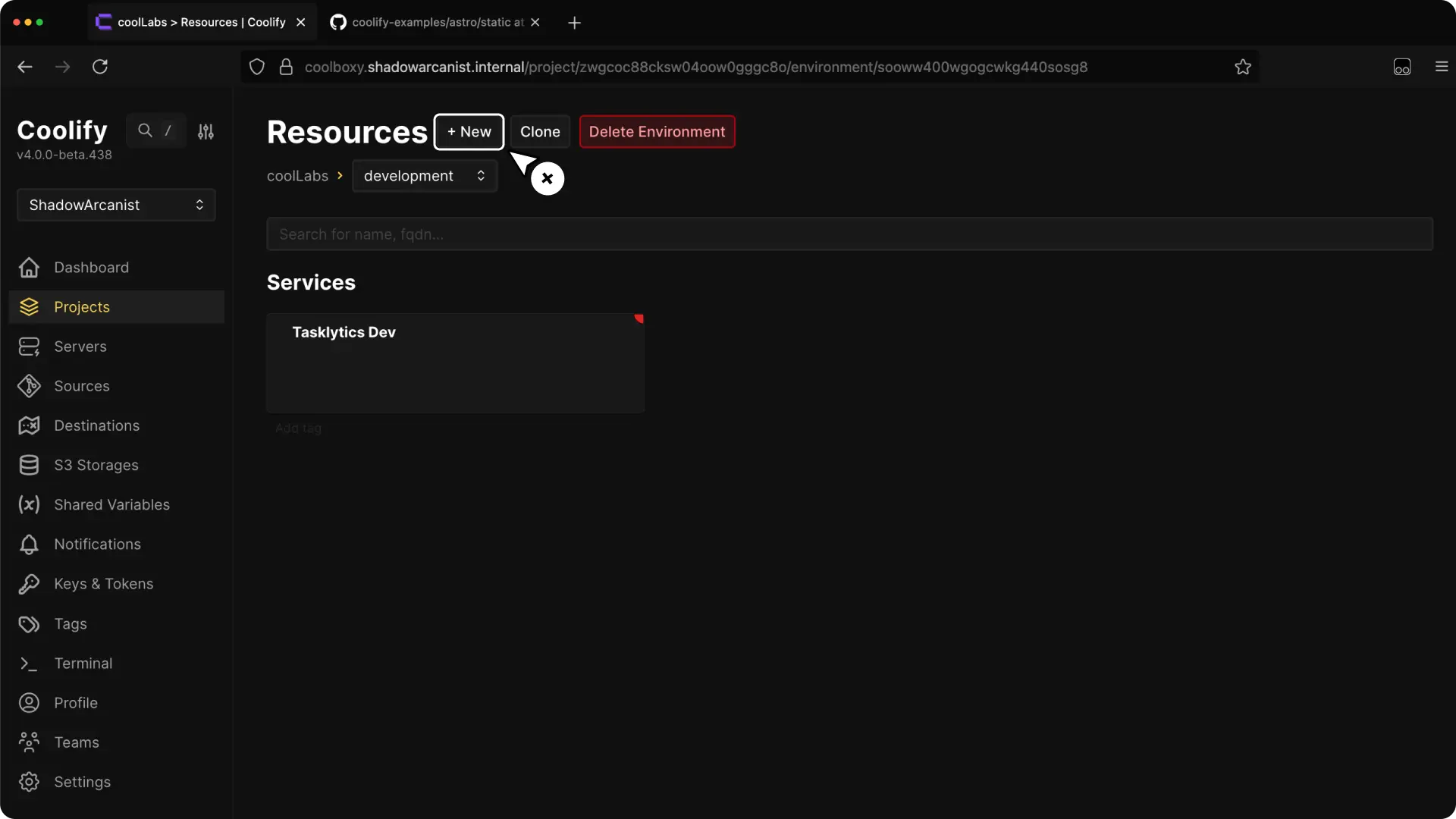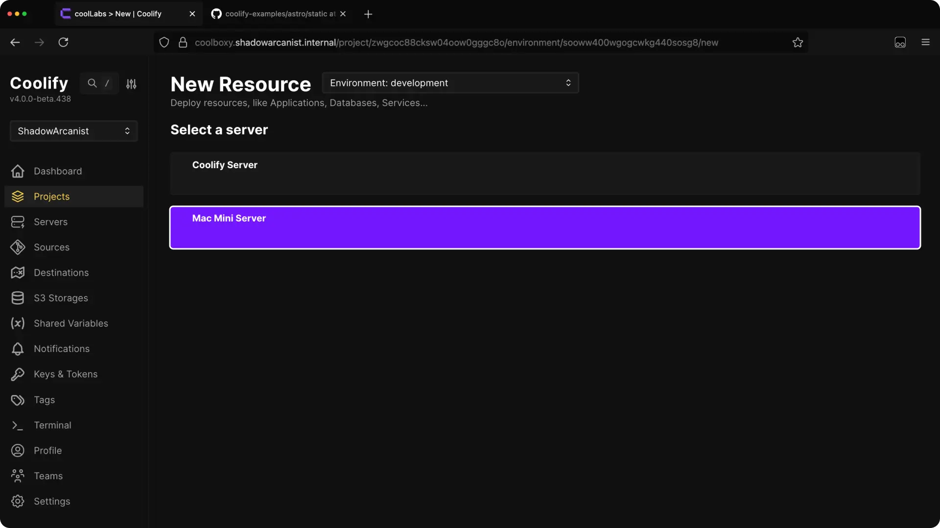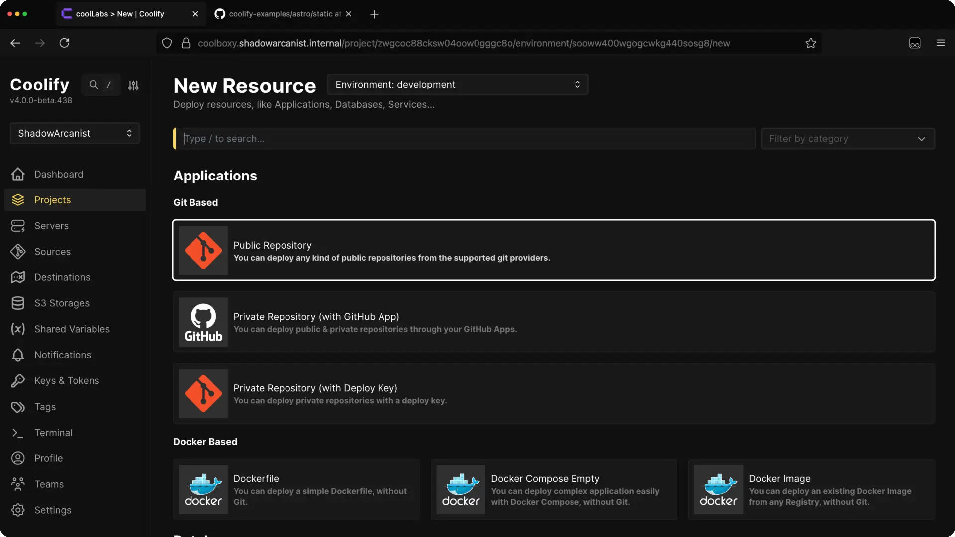 1. Create a New Resource on Coolify ​