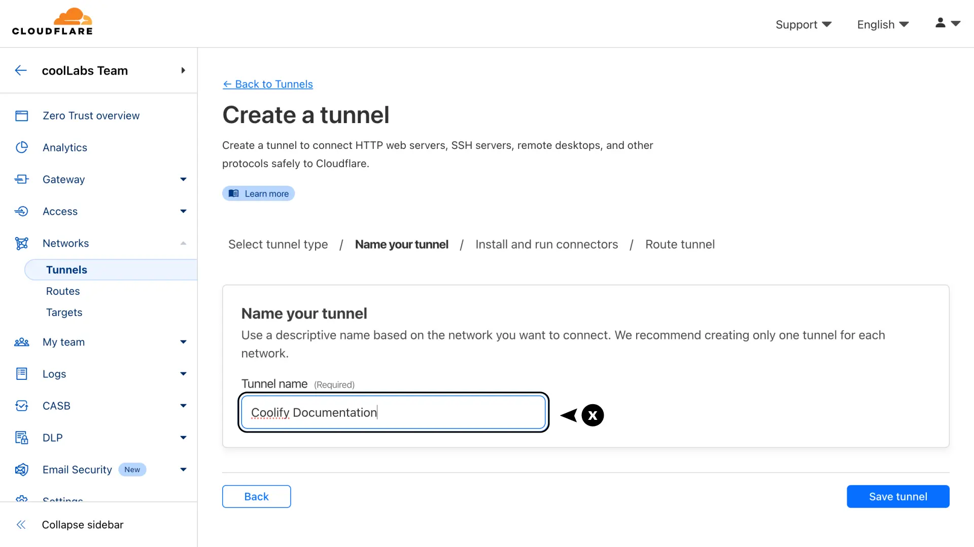 You will be prompted to enter a tunnel name. Choose a name that you prefer.