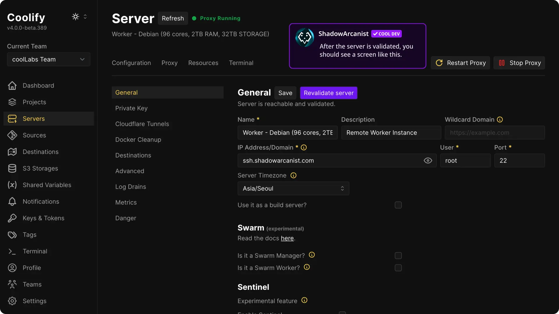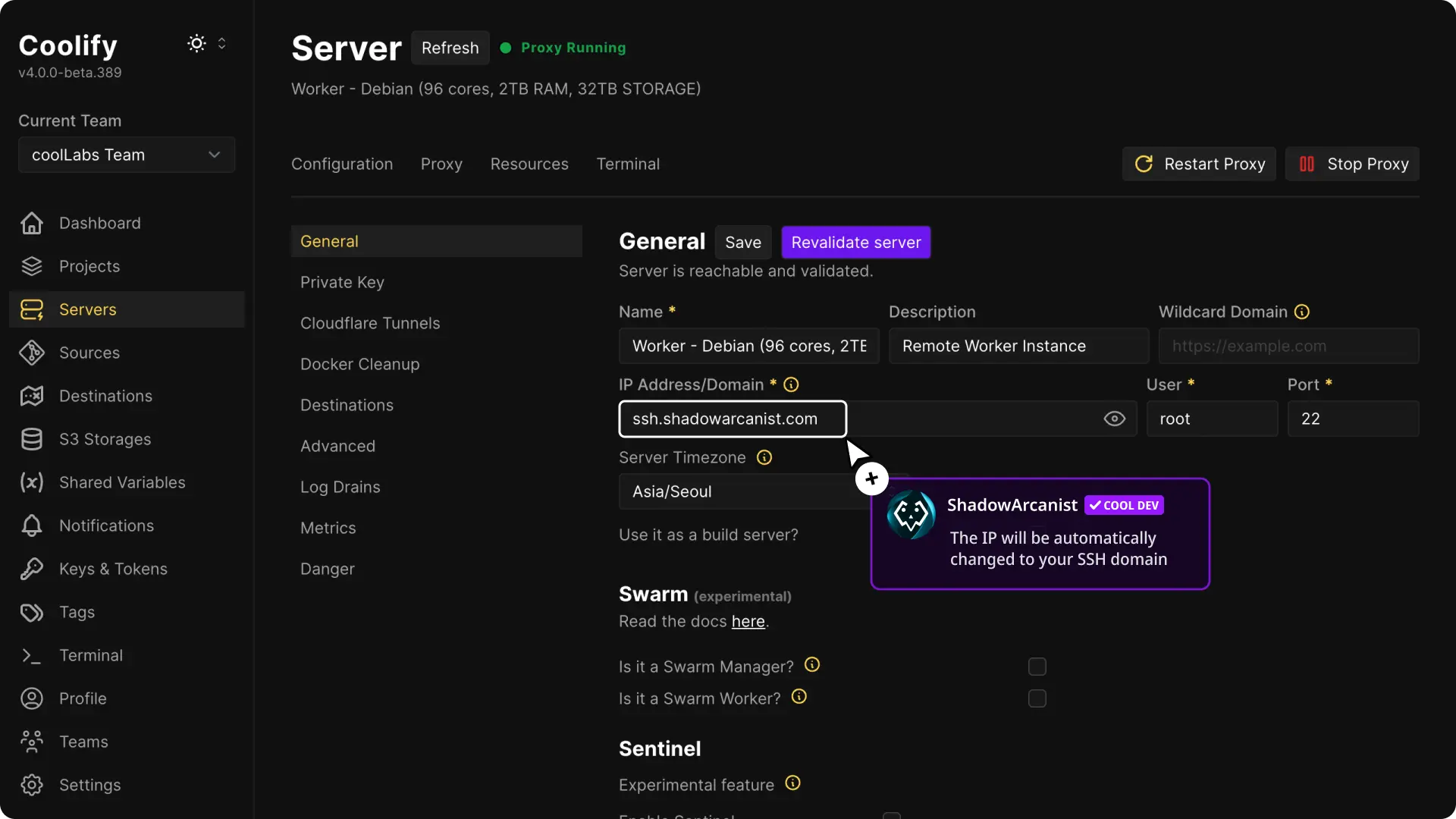 At this point, your server's IP address will be automatically updated to the SSH domain by Coolify.