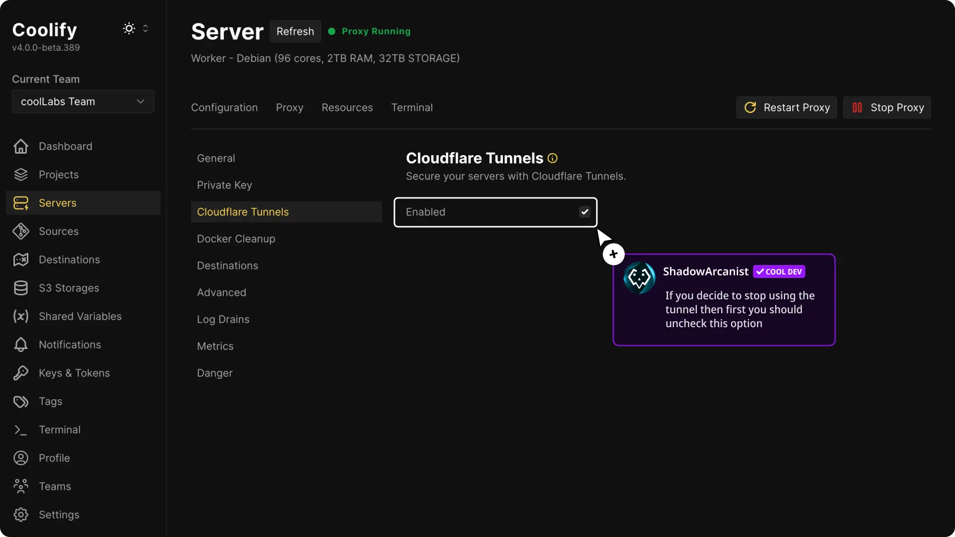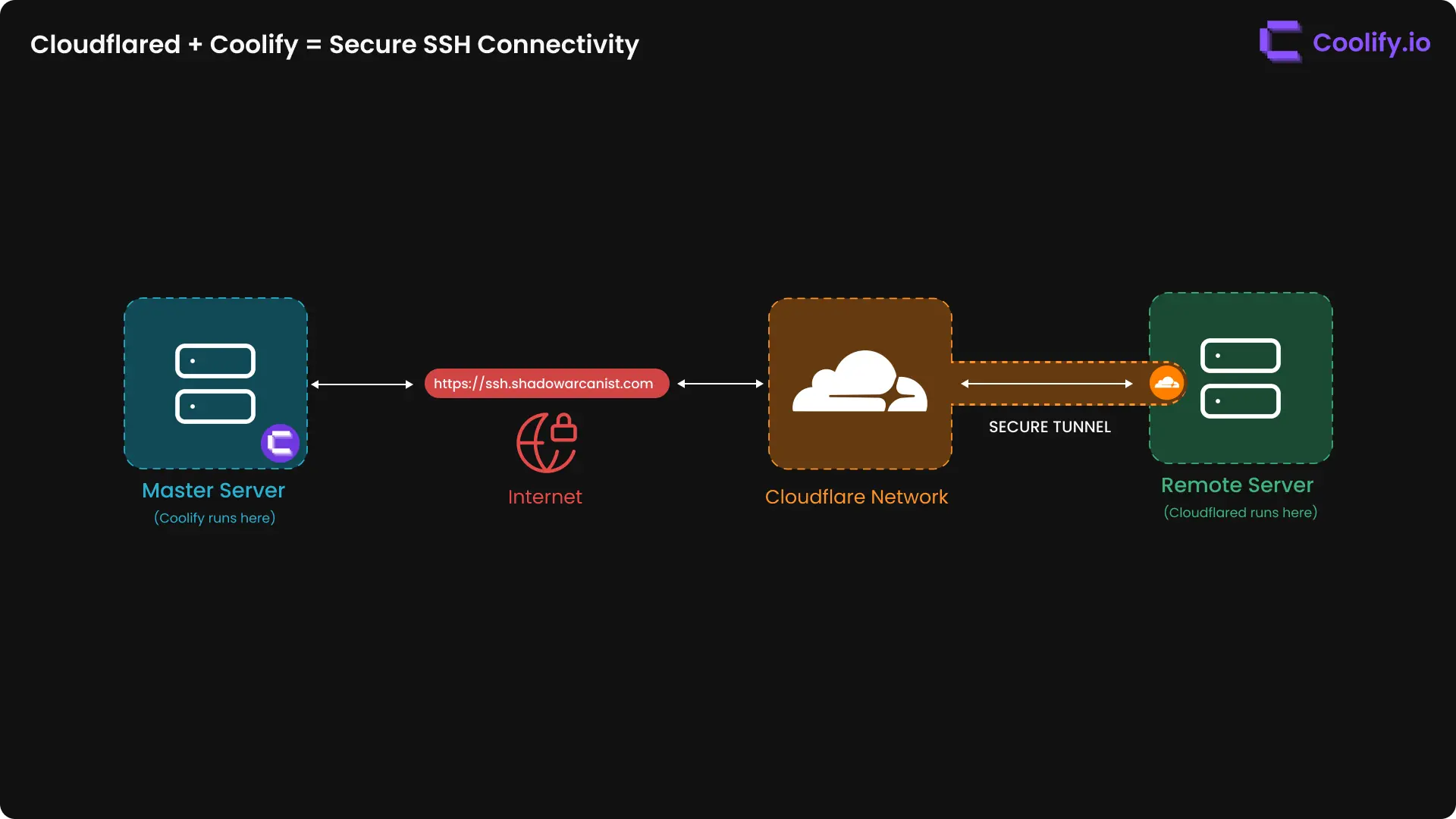 Congratulations! You've successfully set up a server that can be accessed by Coolify over SSH using Cloudflare tunnels via your domain.