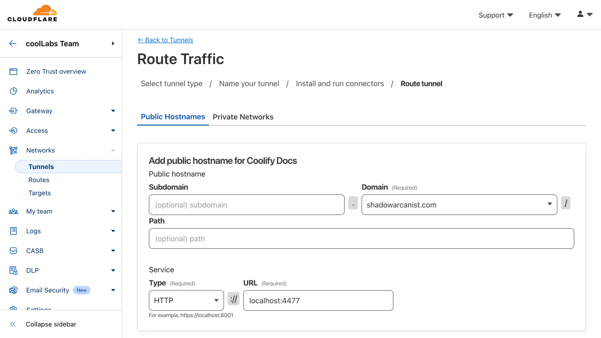 - Create a new public hostname on Cloudflare Tunnel as described in Step 2.